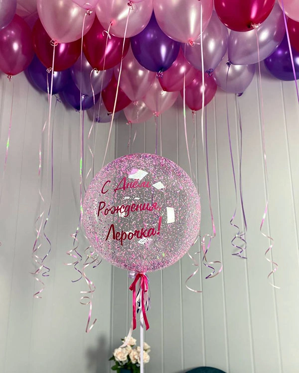 Шары с глиттером или конфетти: Внутри шара находится блестящее наполнение.