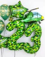 Фольгированный воздушный шар в виде фигуры. Имеет встроенный клапан. Приспособлен под гелий. Фольгированные воздушные шары изготавливаются из тонкой миларовой пленки, позволяющей шару не сдуваться в течении нескольких дней.